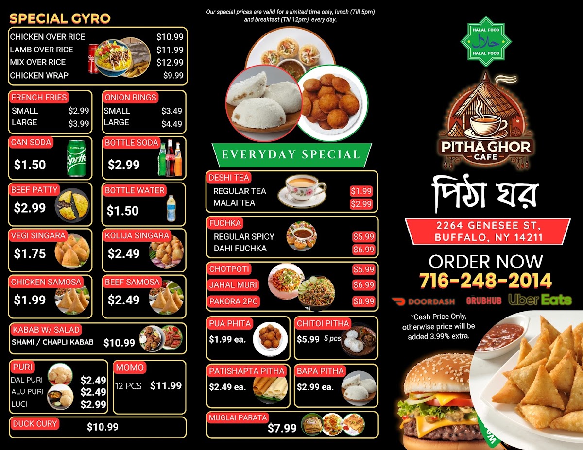 Welcome to Pitha Ghor Cafe, a hidden gem located at 2264 Genesee St, Buffalo, NY. This charming cafe boasts a diverse menu that will tantalize your taste buds. Whether you're in the mood for a classic Cheeseburger starting at just $7.99 or craving the savory warmth of a Philly Cheese Steak combo for $11.99, there's something for everyone.